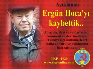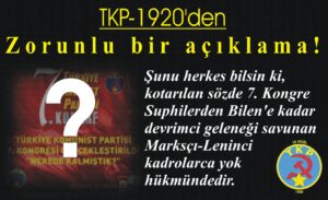 tkp-admin Change your cover photoUpload Change your cover photoUpload tkp-admin This user account status is Approved About About Posts Posts Comments Comments Açıklama: Süleyman Özdemir’i kaybettik 7 gün ago in: TKP'den no comments Açıklama: ABD Başkanı Trump’ın yeni dünya düzenine karşı çıkılmalı, Maduro ve eşi hemen serbest bırakılmalı 1 hafta ago in: TKP'den no comments AÇIKLAMA: Mugaffer Erdogan’ı kaybettik 3 hafta ago in: TKP'den no comments TKP – 1920’den Zorunlu bir açıklama! 3 hafta ago in: TKP'den no comments Açıklama: Ergün Hoca’yı kaybettik… 4 hafta ago in: TKP'den no comments TKP 105 Yaşında: Yaşıyor, Savaşıyor! 4 ay ago in: TKP'den no comments Açıklama: Tüm muhalefet yeni barış sürecinin demokrasiyle taçlanması için birleşmelidir! 6 ay ago in: TKP'den no comments AÇIKLAMA: Sonsuzluğa uğurladığımız Sırrı Süreyya Önder‘in “Barış Mücadelesi” unutulmayacak! 9 ay ago in: TKP'den no comments Yaşasın dünya işçi ve emekçilerinin birlik, dayanışma ve mücadele günü 1 Mayıs! 9 ay ago in: TKP'den no comments Türkiye Komünist Partisi TKP – 1920’nin İmamoğlu’nun tutuklanmasına değin açıklaması: 10 ay ago in: TKP'den no comments load more posts